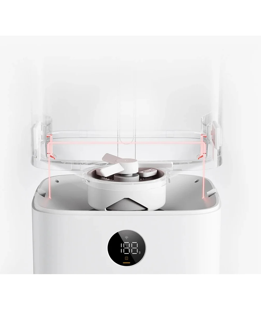 Com capacidade de 5 litros, sensores de pesagem precisa e controlo via app, oferece total tranquilidade mesmo quando estás fora de casa.