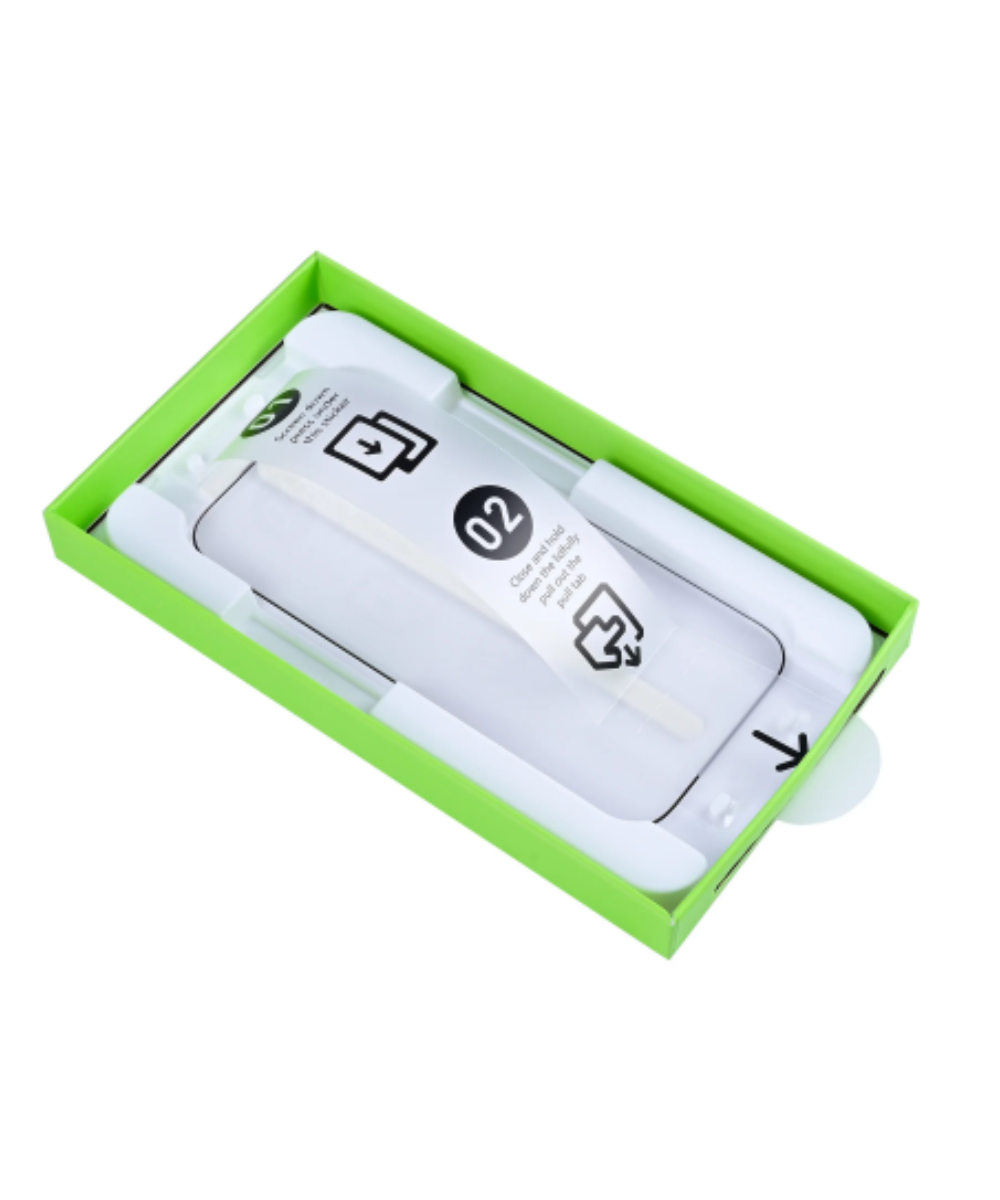 • Anti-Pó: O processo de aplicação minimiza a exposição do ecrã a partículas de poeira suspensas no ar.